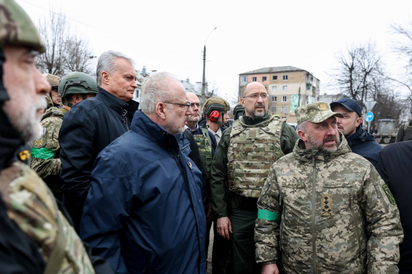 Прем’єр-міністр України Денис Шмигаль разом із президентами Естонії Аларом Карісом, Латвії Егілсом Левітсом, Литви Гітанасом Науседою та Польщі Анджеєм Дудою 13 квітня відвідали розбомблене росією смт Бородянка Київської області.