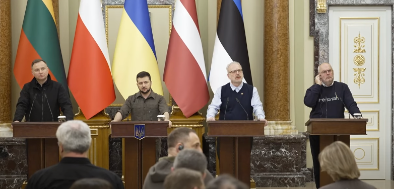 Сьогодні Глава держави Володимир Зеленський зустрівся з Президентами Естонії, Латвії, Литви та Польщі, які перебували з візитом в Києві. Лідери країн відвідали звільнені населені пункти у Київській області та на власні очі побачили наслідки воєнних злочинів РФ.