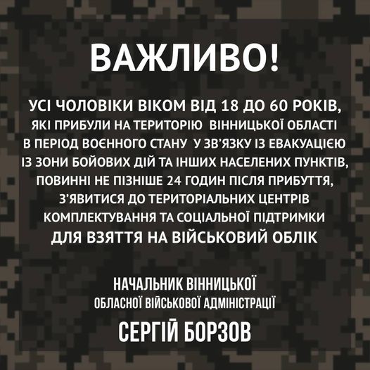 Відповідальні за зміст сторінок веб-порталу облвійськадміністрації: структурні підрозділи облвійськадміністрації, районні військові адміністрації, територіальні підрозділи міністерств у Вінницькій області, веб-сторінки яких розміщені на цьому порталі. Використання будь-яких матеріалів, що опубліковані на цьому сайті, дозволяється при умові зазначення посилання (для інтернет-видань - гіперпосилання) на офіційний сайт Вінницької облвійськадміністрації www.vin.gov.ua.