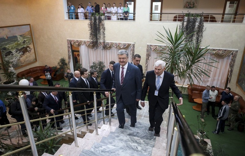 Під час робочої поїздки на Вінничину Президент Петро Порошенко відвідав курорт «Хмільник» та поспілкувався з ветеранами АТО/ООС, які проходять реабілітацію в цьому всесвітньовідомому курорті та ознайомився з умовами їх відновлення та лікування