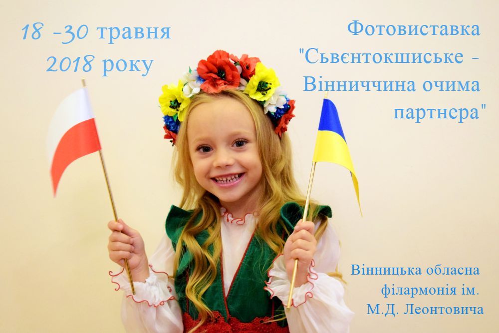 18 травня 2018 року о 18 год., в приміщенні Вінницької обласної філармонії ім. М.Д. Леонтовича відбудеться офіційна церемонія відкриття виставки художньої фотографії «Сьвєнтокшиське – Вінниччина очима партнера» під патронатом Вінницької облдержадміністрації, Генерального Консульства Республіки Польща у Вінниці та Посольства України в Республіці Польща.