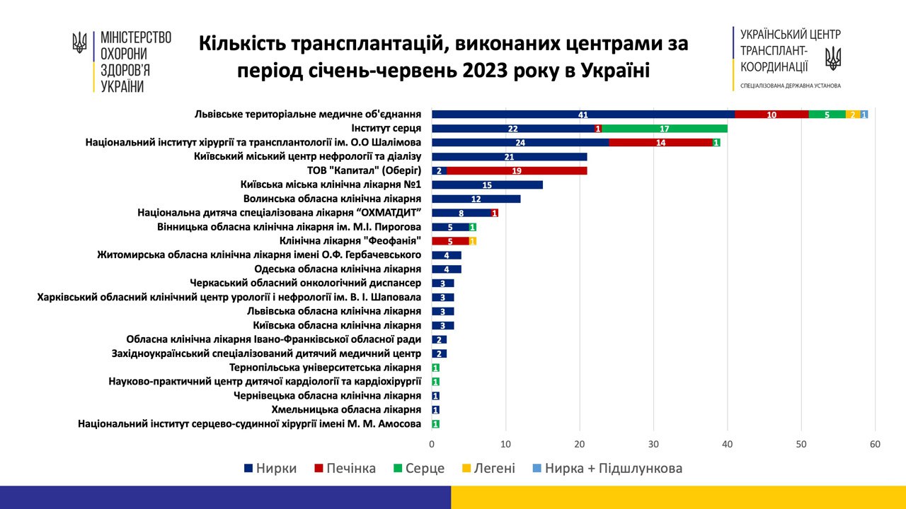 Це результати роботи за шість місяців 2023 року. Такі дані оприлюднив Український центр трансплант-координації.