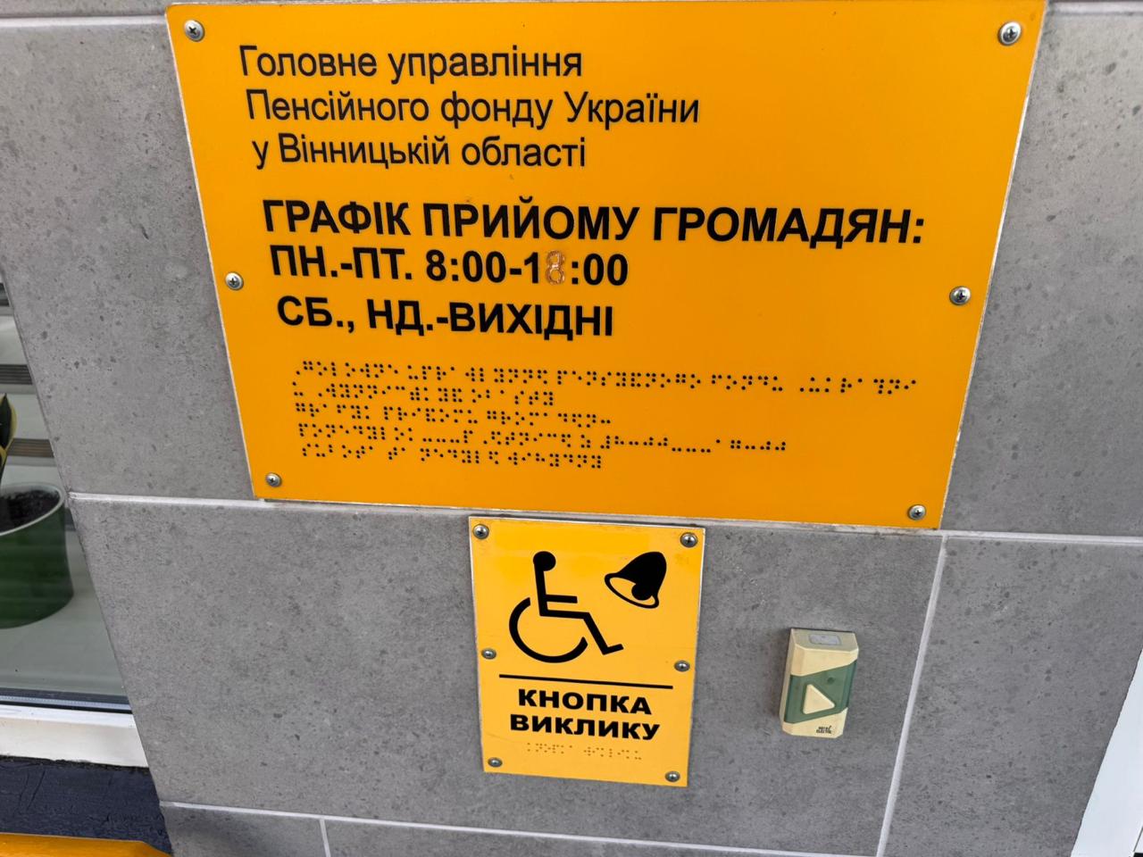 - вивіски продубльовано шрифтом Брайля