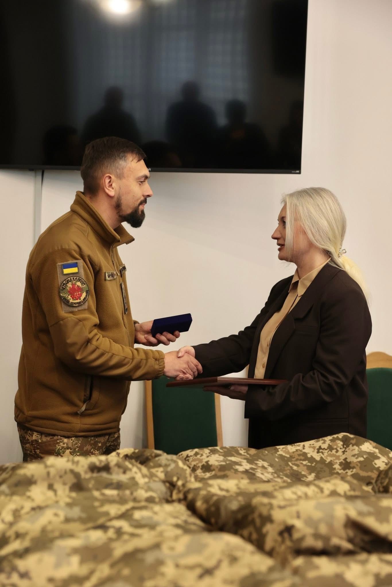 Перша заступниця начальника ОВА Наталя Заболотна передала для військовослужбовців 14-тої бригади оперативного призначення НГУ «Червона калина» 100 антитепловізійних пончо-плащів та 15 квадрокоптерів DJI Mavic 3 Pro.