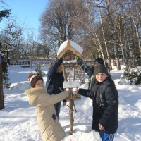 Не забувають юні лісівники і про інших птахів, які зимують у нас. Синичкам, дятлам, сойкам, снігурам змайстрували учні разом з батьками годівнички, розмістили в саду, на території школи та Сумівського лісництва, насипали зерна. Смакуй пташко, співай пісень і бережи ліс.