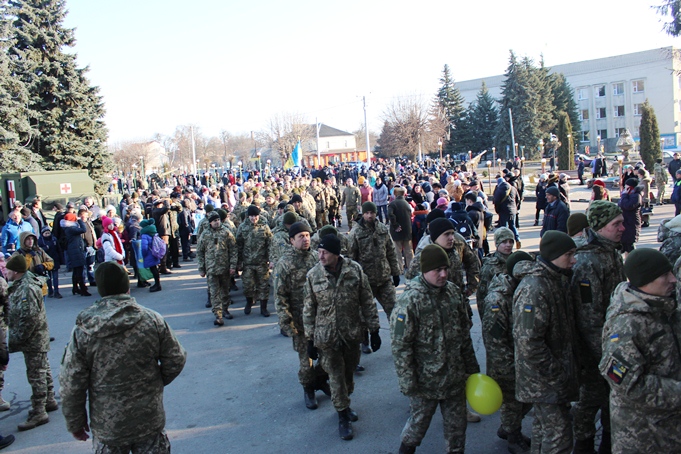 Зустріч була зворушливою та хвилюючою. Під звуки оркестру урочистою ходою пройшли герої (близько тисячі військовослужбовців) центральною вулицею міста.