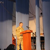 Командир 59 ОМПБ Василь Осипчук розповів про створення бригади, про її бойовий шлях, про оснащення та матеріальне забезпечення. Щиро подякував Владиславу Уткіну, Миколі Кучеру за постійну підтримку, фінансову та матеріальну допомогу, яка надається бригаді.