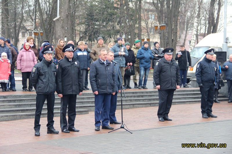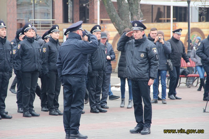 Патрульних поліцейських, які склали присягу, привітав керівник поліції Вінниччини Юрій Педос, закликавши завжди дбати про безпеку громадян, свою особисту та безпеку своїх товаришів.