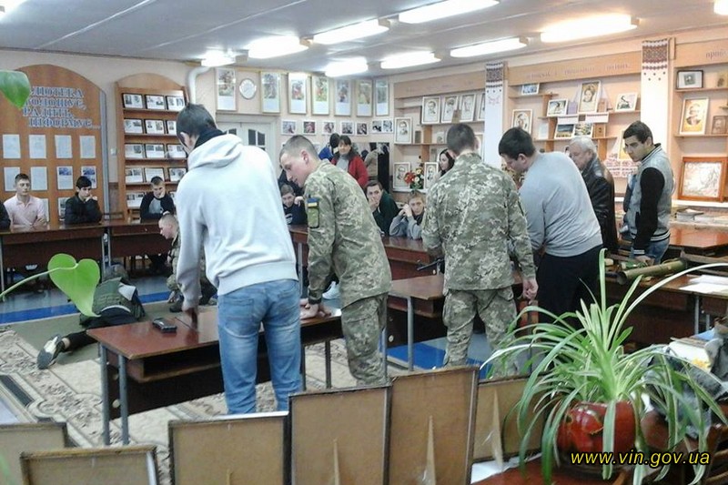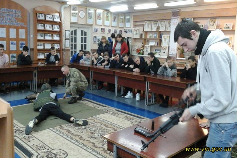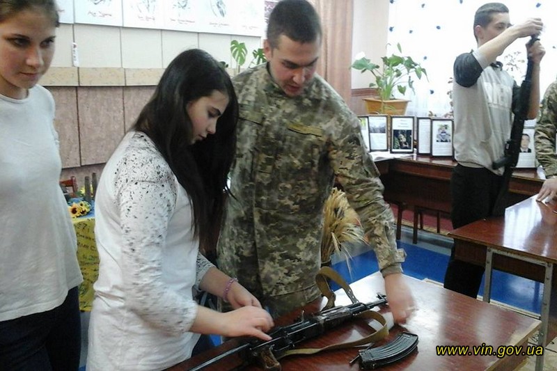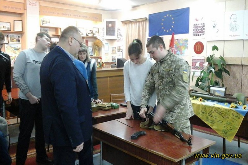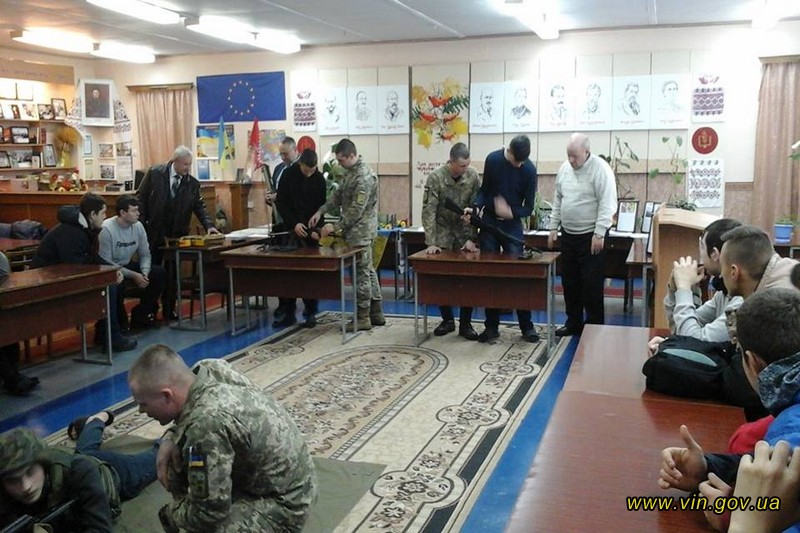 15 лютого Військовою службою правопорядку Збройних сил України спільно з Департаментом освіти і науки Вінницької облдержадміністрації проведено «урок мужності» для учнів Центру професійно-технічної освіти №1 м. Вінниці. Практичні заняття відбулися в бібліотеці навчального закладу. В ході тренування учні вчилися обслуговувати автоматичну зброю: вивчали її будову, практикувалися в збиранні та розбиранні автомата.