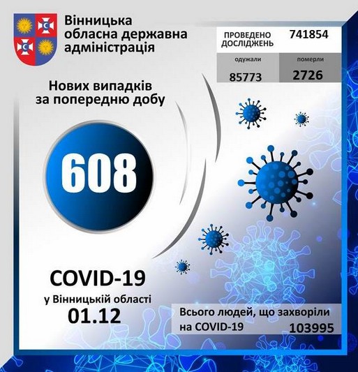 Впродовж минулої доби всіма лабораторіями області досліджено 1523 зразки на COVID-19 (в т.ч. ОЦКПХ – 1128, Меділабс-272, Центр ІХ-45, міський лікувально-діагностичний центр – 61, Могилів-Подільська ОЛІЛ-17).