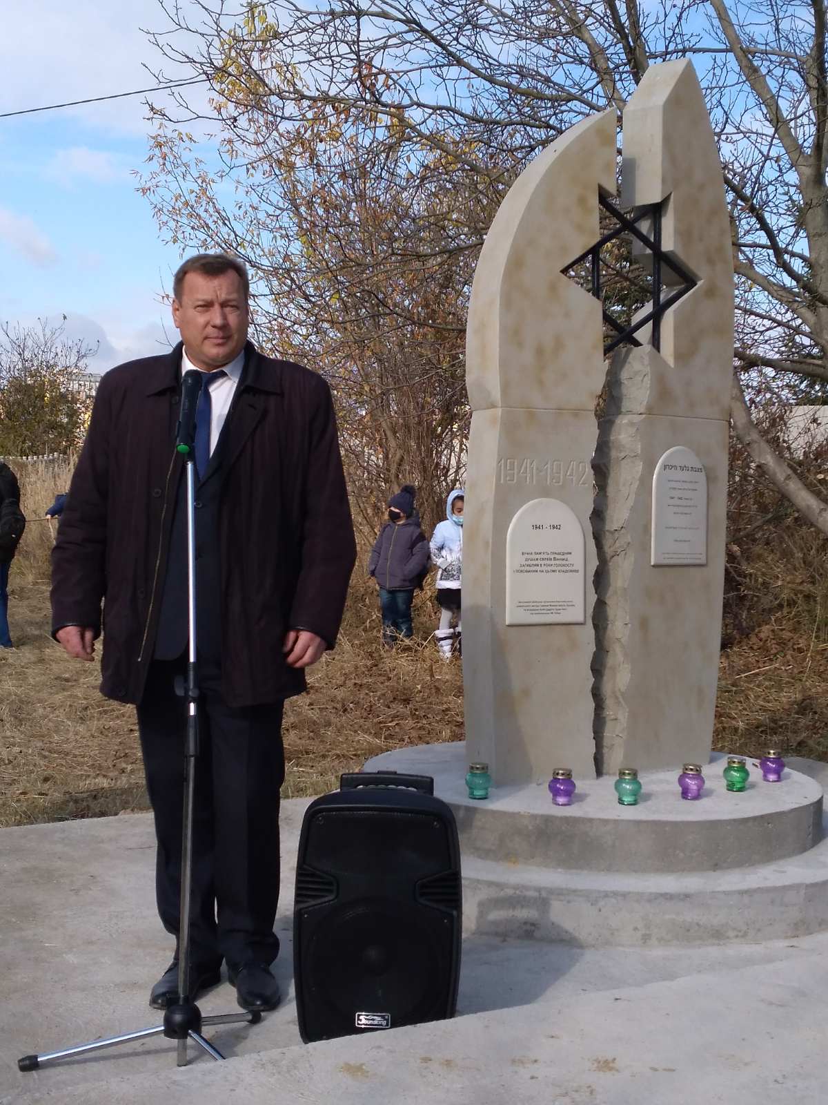 «- Відомо, що на місця масових розстрілів на вулицю Максимовича тоді гнали євреїв зі Старого Міста… Але, щоб не «витрачати час», їх тоді зігнали тут на цвинтар і знищили… І ось врешті закрита ще одна «біла пляма» у трагедії вінницького Голокосту. Але, на жаль, ще близько 25 місць таких масових розстрілів та братських могил досі лишаються невідомими. Це кар’єри цегельних заводів, вінницька траса і так далі,” – повідомив голова Вінницької іудейської релігійної громади Ісаак Новоселетський.